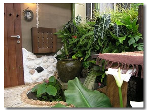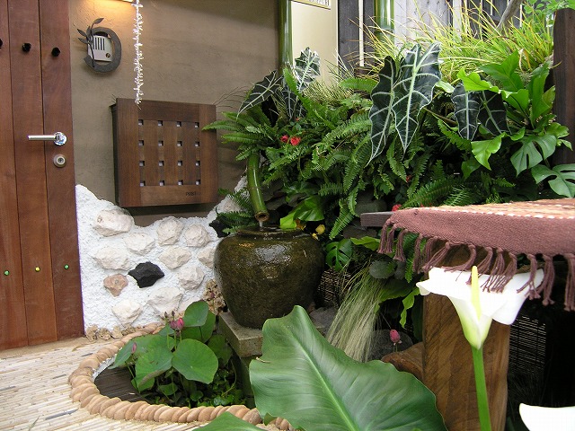 コンセプトは“ハワイのリゾート庭園”、バラを使用した高級庭園をイメージして施工しました。
